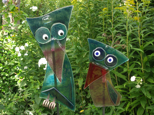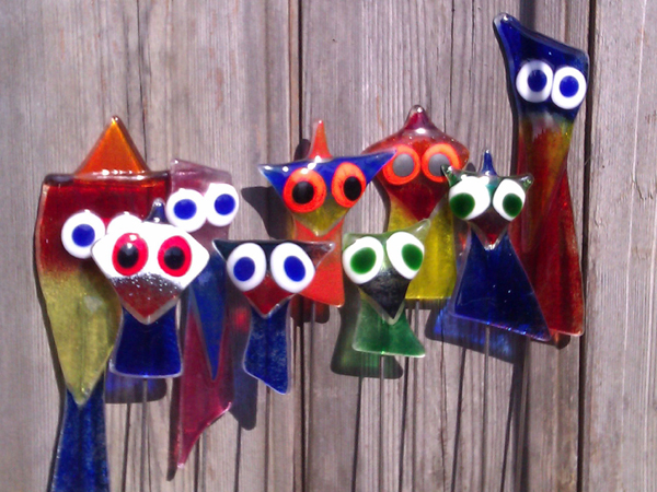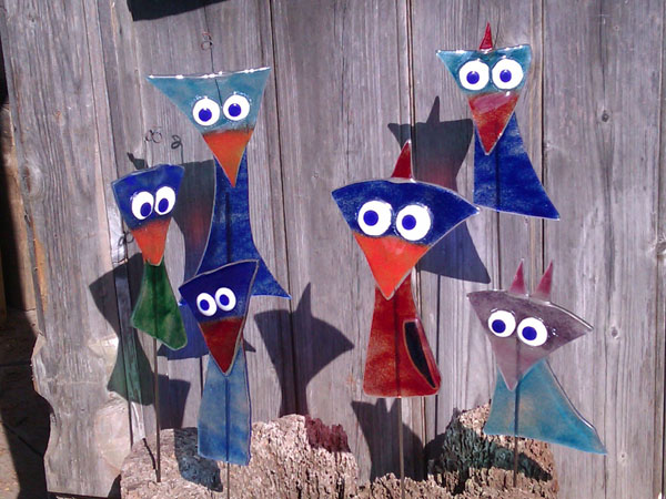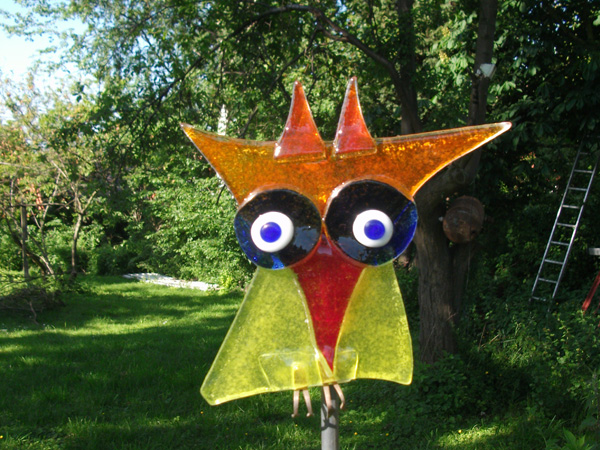 Bunte Phantasiegeschöpfe aus Fensterscheiben